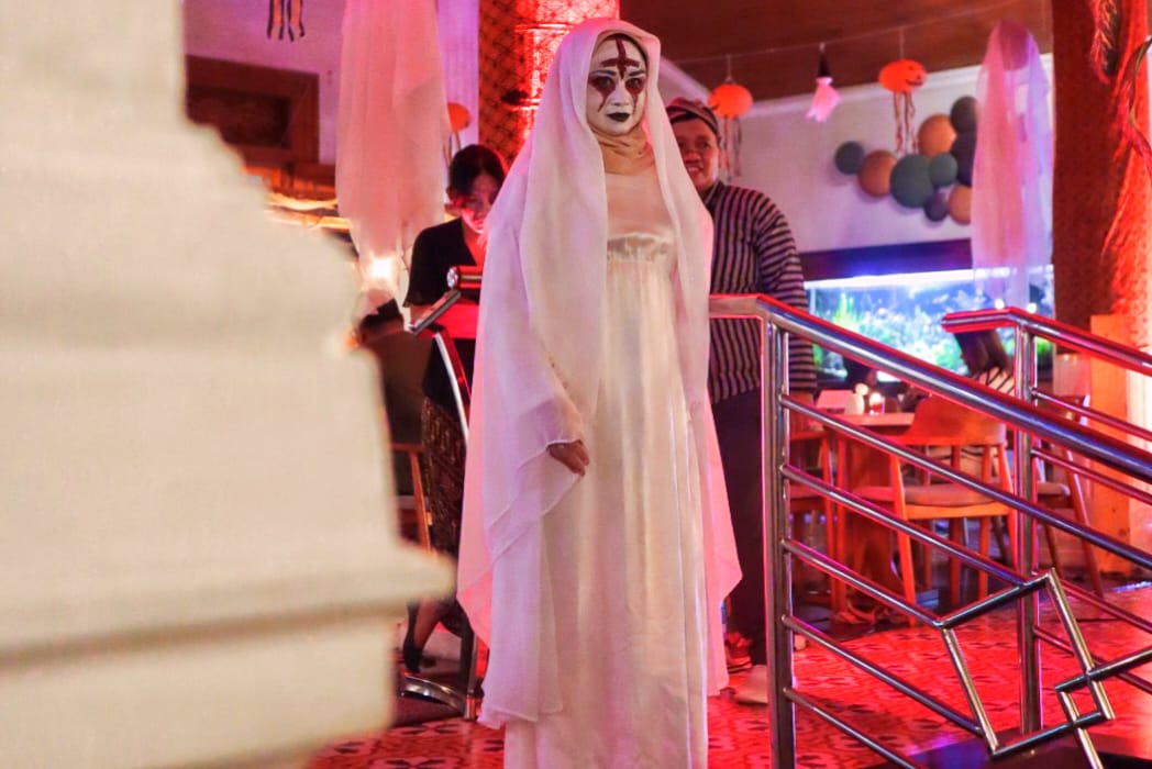 Selama dua jam makan malam, suasana semakin mencekam dengan iringan live music Mahameru Band, staf berkostum lurik jadul dengan make-up hantu, dan dekorasi pendopo bernuansa rumah Jawa angker.